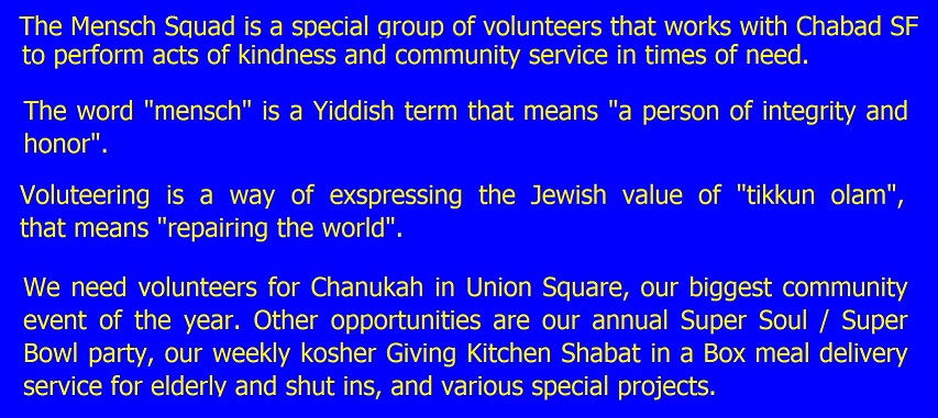 Mensch Squad / menschsquaud.org is a project of Chabad SF / chabadsf.org